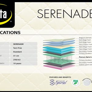 تتمتع هذه الفرشة بوسادة في أعلاها، فضلاً عن عدم الحاجة إلى قلبها، وهي مزودة بنظام نوابض بوستشر سبايرال إنر سبرنج الذي حصلت سيرتا على براءة اختراع له، وهو نظام مصنوع بكامله من سلك متواصل ويوفر دعماً أكبر بمقدار 80% من التصاميم ذات النوابض المفردة. تعمل النوابض المتواصلة معاً لتوفير الدعم المناسب وتقليل أثر تحركات الشريك.